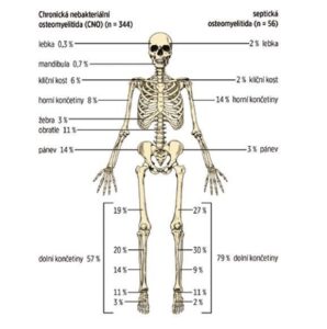 Najčešće zahvaćene kosti su metafize dugih kostiju, ključna kost, tijela kralježaka i zdjelica (vidi sliku 2). Broj lezija na kostima varira (ponekad je prisutna samo jedna lezija, češće više lezija). Ponekad se čak i asimptomatske lezije otkrivaju scintigrafijom kostiju ili magnetskom rezonancom cijelog tijela (WB MRI).