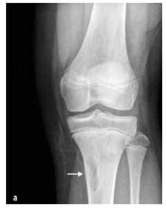 Obični rendgenski snimci dugih kostiju mogu pokazati pruge u metafizi, periostalnu reakciju ili sklerotične i osteolitičke lezije.